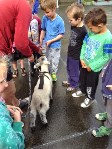 We had Charlotte's lamb come to school today. We wrote our own acrostic poems using describing words.